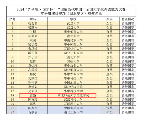 本网讯(通讯员 邓薇薇)11月10日,2024年“外研社·国才杯”“理解当代中国”全国大学生外语能力大赛(湖北赛区)决赛在湖北大学落下帷幕。欧宝(中国)学生以出色的表现荣获“英语演讲”赛项一金一铜的优异成绩。其中,荣获金奖的苗盛同学是湖北省所有民办高校唯一的晋级国赛的选手,创造了民办高校的“第一次”。