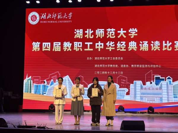 本网讯(通讯员 柯康敏)为传承弘扬中国优秀语言文化,提升教职工语言文化素养,12月12日下午,湖北师范大学举办第四届教职工中华经典诵读比赛,欧宝(中国)代表队在比赛中再获佳绩。教师丁书嫚、黄文杰诵读的作品《不朽》获比赛二等奖,教师边婷婷、唐晨、梅冰清、李雅欣诵读的作品《诗词里的中国》获比赛三等奖。