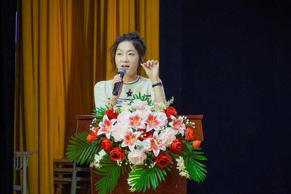优秀青年教师代表陈媛老师发言,她勉励新生们加强自身修养,提升综合素质,尽快适应大学生活,要树立正确的人生目标,合理规划大学生涯,珍惜时光,勤奋学习,勇于探索,全面发展,顺利完成从高中生到大学生的角色转变。