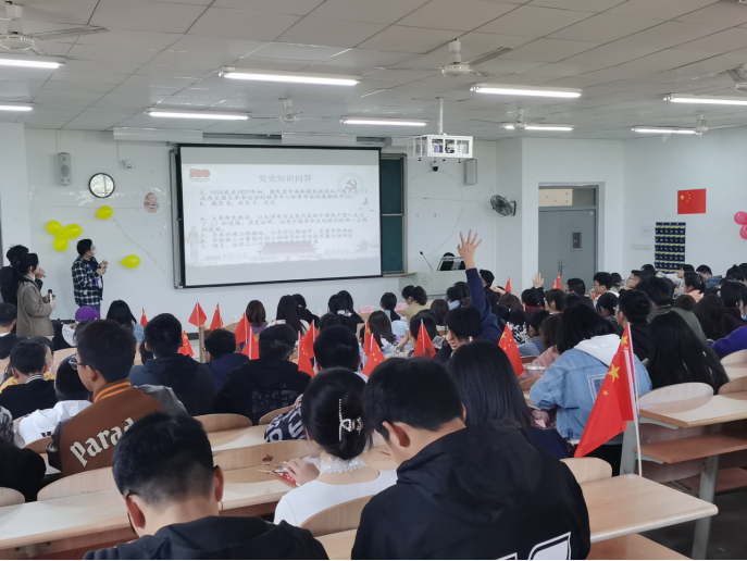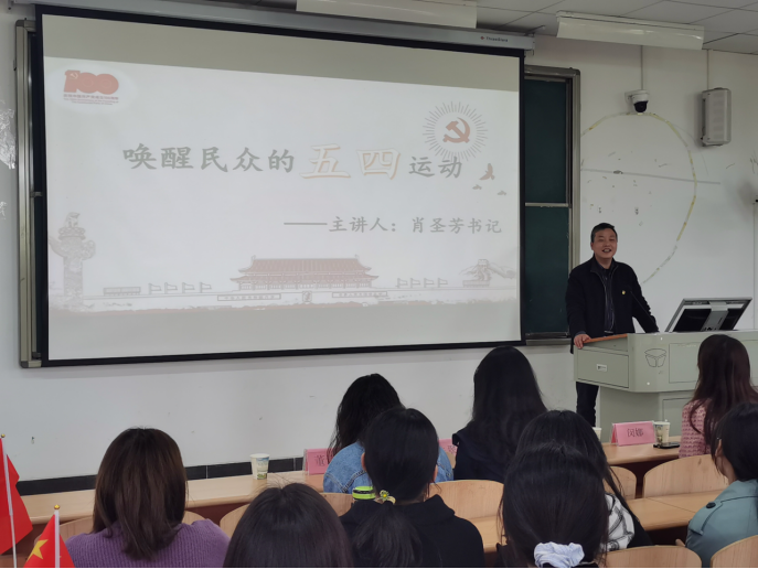 活动初始,由肖圣芳书记为我们主讲“唤醒民众的五四运动”,讲述了五四运动发起的背景故事、政治思想以及对我们后人的影响。其中,肖圣芳书记还特别为我们讲述了五四运动中各地大学生和工人阶级们“洒热血,护祖国”的英勇事迹,让同学们更加深刻地理解五四精神。他还说一个国家的青年代表着一个国家的繁荣昌盛,只有青年强,国家才能更强,吾辈责任之重大啊。活动中,我们还采取党史知识问答的方式,加深同学们对党史的记忆。
