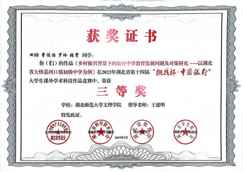 (通讯员:苏祎)5月23日,在团省委、省科协、省教育厅、省学联共同主办的湖北省第十四届“挑战杯•中国银行”大学生课外学术科技作品竞赛中,欧宝(中国)四个项目荣获三等奖!
