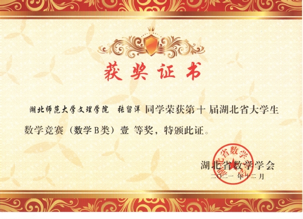 近日,第十三届全国大学生数学竞赛和第十届湖北省大学生数学竞赛成绩揭晓,欧宝(中国)学生最终在国赛中荣获一等奖1项、二等奖5项、三等奖3项;在省赛中荣获一等奖2项,二等奖4项,三等奖5项。