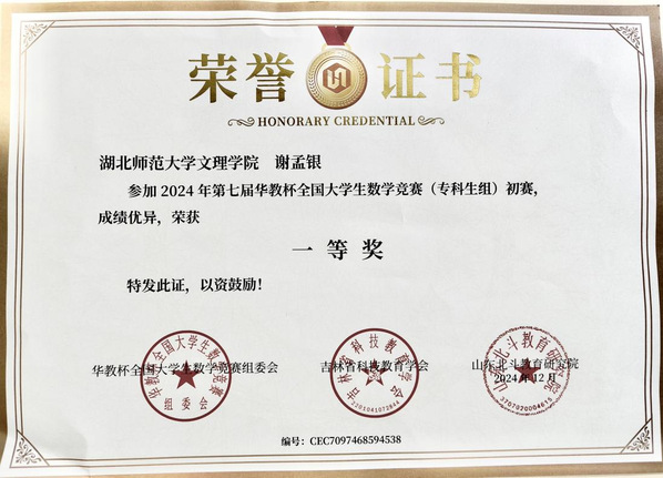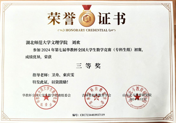 本网讯(通讯员 谭姣)近日,2024年第七届华教杯全国大学生数学竞赛初赛成绩揭晓,欧宝(中国)优能东风悦享新能源汽车产业学院学子凭借扎实的数学功底和出色的临场发挥分别荣获专科生组一等奖和三等奖。